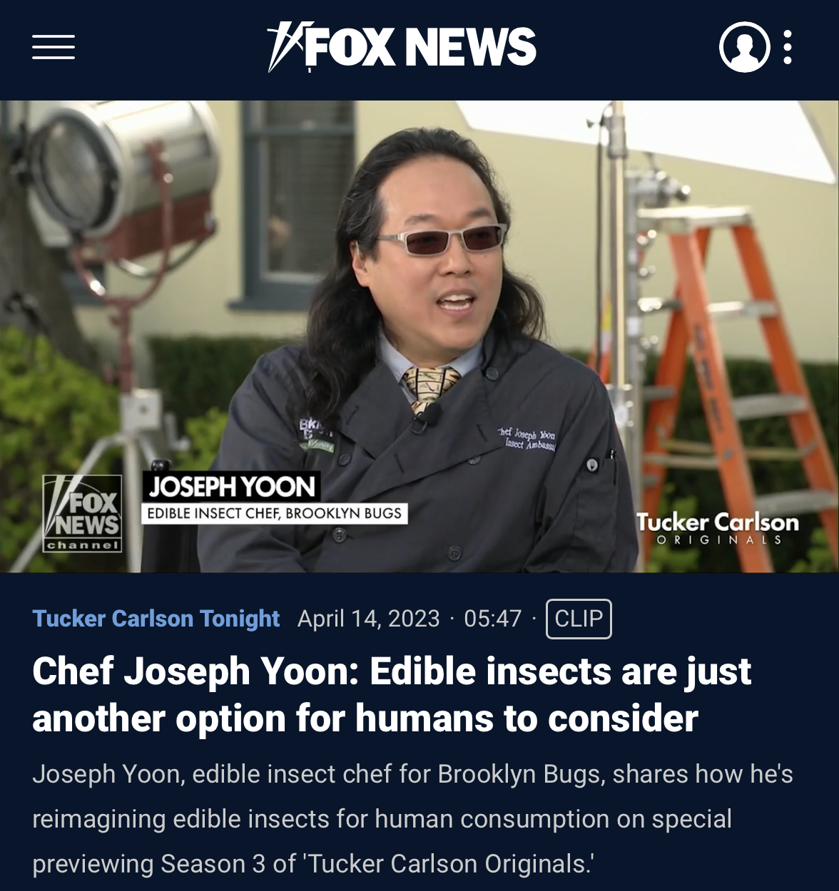 Chef Joseph Yoon, an Edible Insect Ambassador, is a world renowned chef and thought leader in “entomophagy,” or eating insects, and tours around the world to share the incredible potential of not only edible insects, but the burgeoning innovation in Insect Agriculture to impact the United Nations’ 17 Sustainable Development Goals (SDGs), and address the challenges of food security, climate change, health & nutrition, workforce activation, environmentalism, and sustainability.